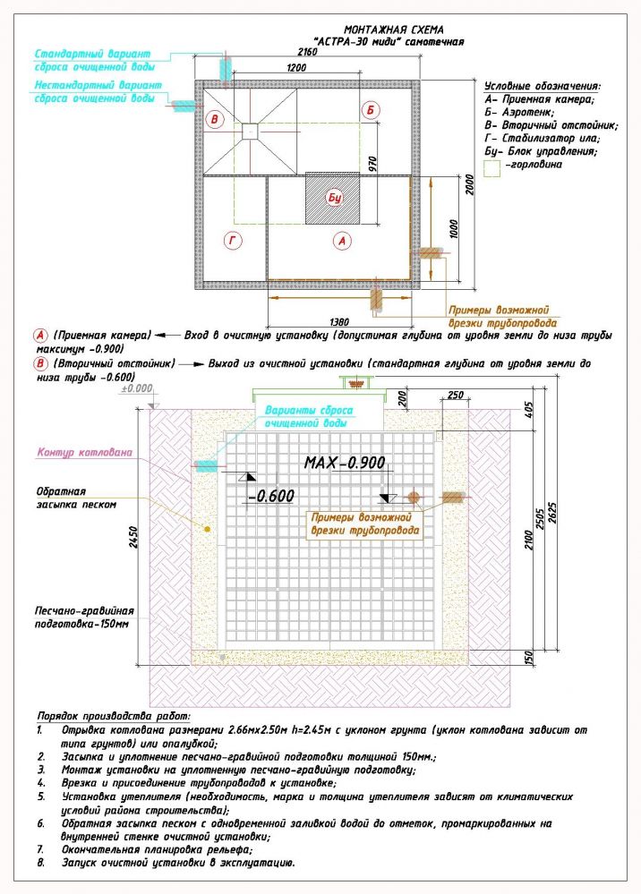 Насос для откачки: нет (самотечный сброс)